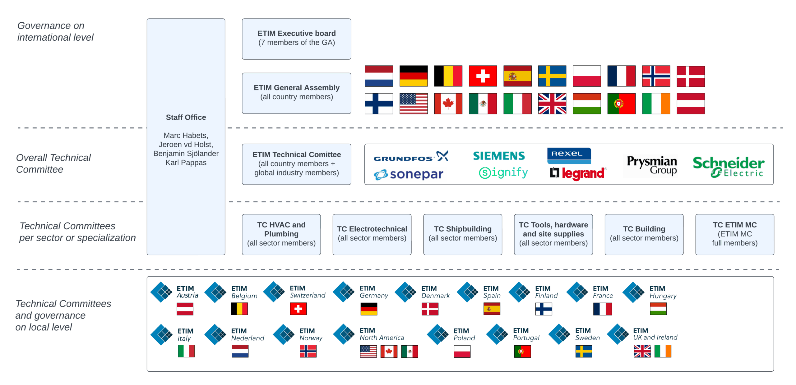 ETIM International was founded to unite local ETIM organizations worldwide. By centrally managing the development, maintenance, publishing and promotion of the ETIM classification model ETIM International aims to sustainably expand its applicability and overall use. Our long-term ambition is for ETIM to be recognized as the worldwide leading product classification standard for professional businesses in installation, building and construction. Further developing ETIM is a continuous process and a joint effort of members and users alike. Our role is to ensure that the ETIM model remains simple, solid, reliable, unambiguous, independent and open for everyone.